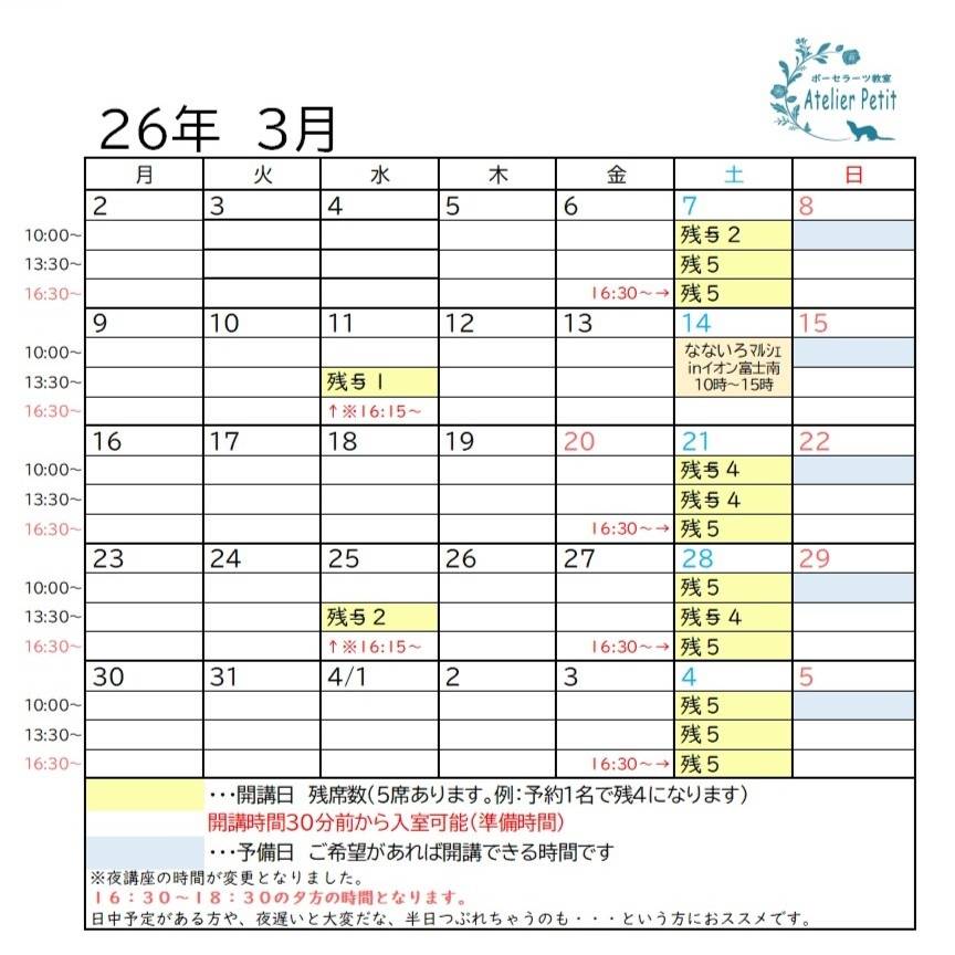 カレンダー:2026.3.2更新