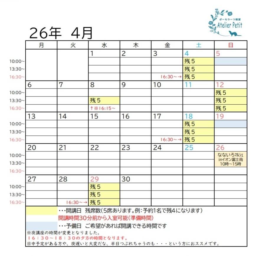 [受付時間]9:30 ~ 14:00(開講時間は16:00まで) / [ご予約]お問い合わせページのカレンダーをご覧ください。